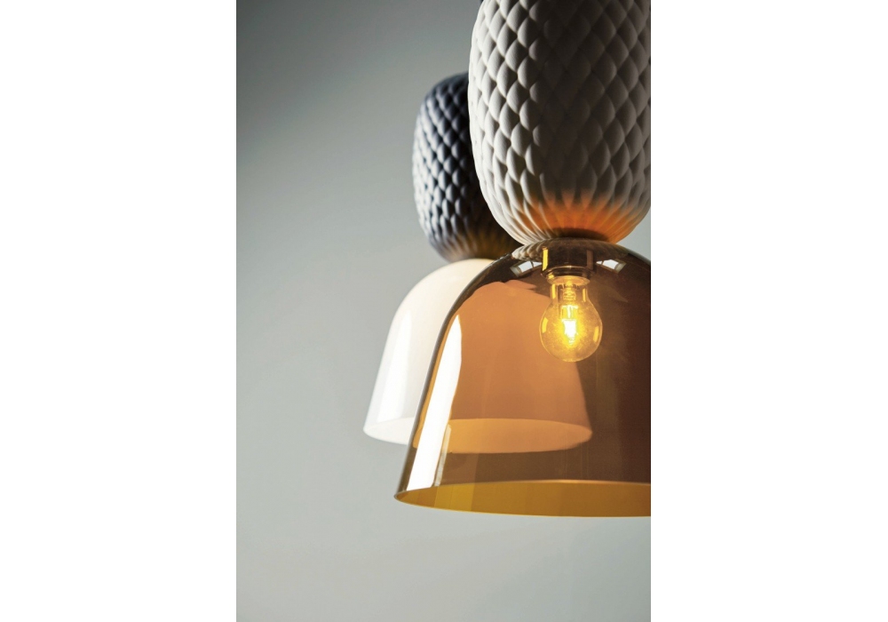 Pineapple 7214/1 von Matteo Zorzenoni für MMLampadari entworfen, ist eine Hängelampe mit poliertem Glasschirm und Keramikstruktur, die in fünf Farbkombinationen erhältlich ist.