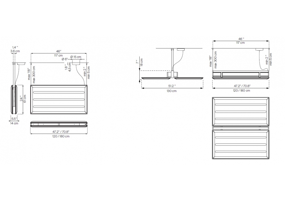 | Diffusor | 120 x 15 x H 5 cm; 180 x 15 x H 5 cm. |