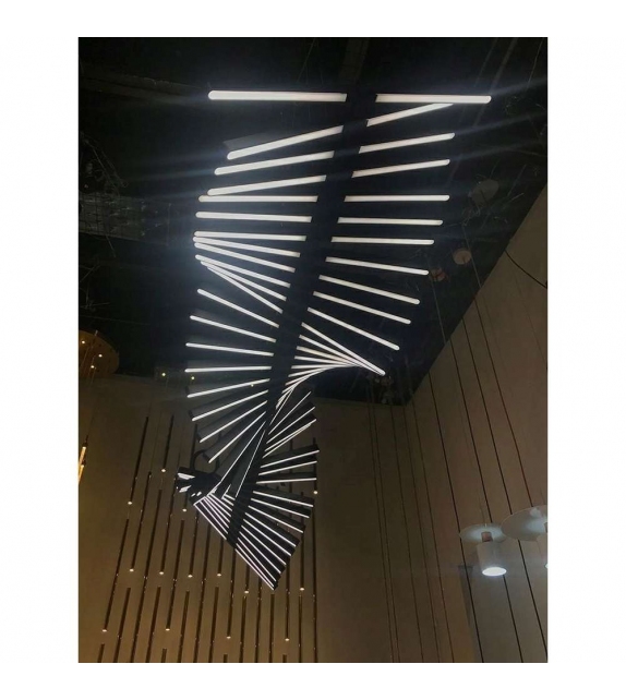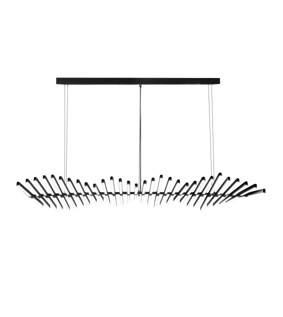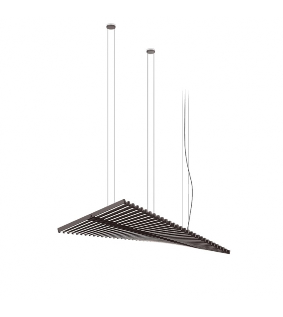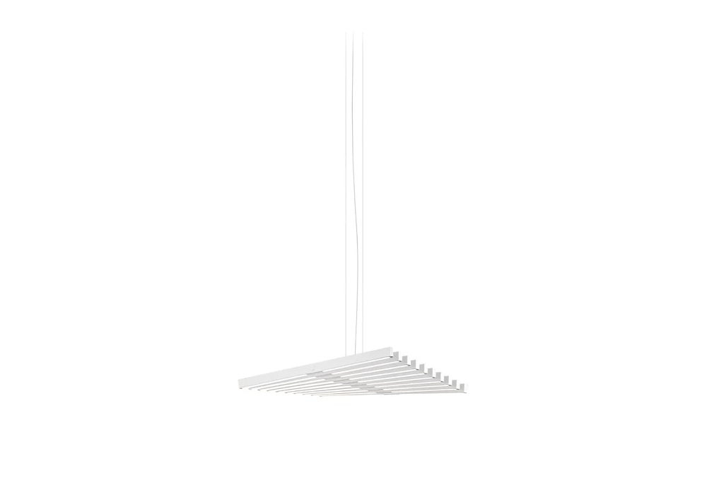 Rhythm Horizontal signiert von Arik Levy Bei Vibia handelt es sich um eine Hängeleuchte mit Stahlrosette, die dank ihrer horizontalen Methacrylatmodule unendlich viele Einstellungen ermöglicht. Die Diffusoren bestehen aus Methacrylat und schirmen die dimmbaren LED-Lichtquellen ab. Rhythm Horizontal ist in verschiedenen Modellen, Lichttönen, Dimmbarkeiten und Ausführungen erhältlich.