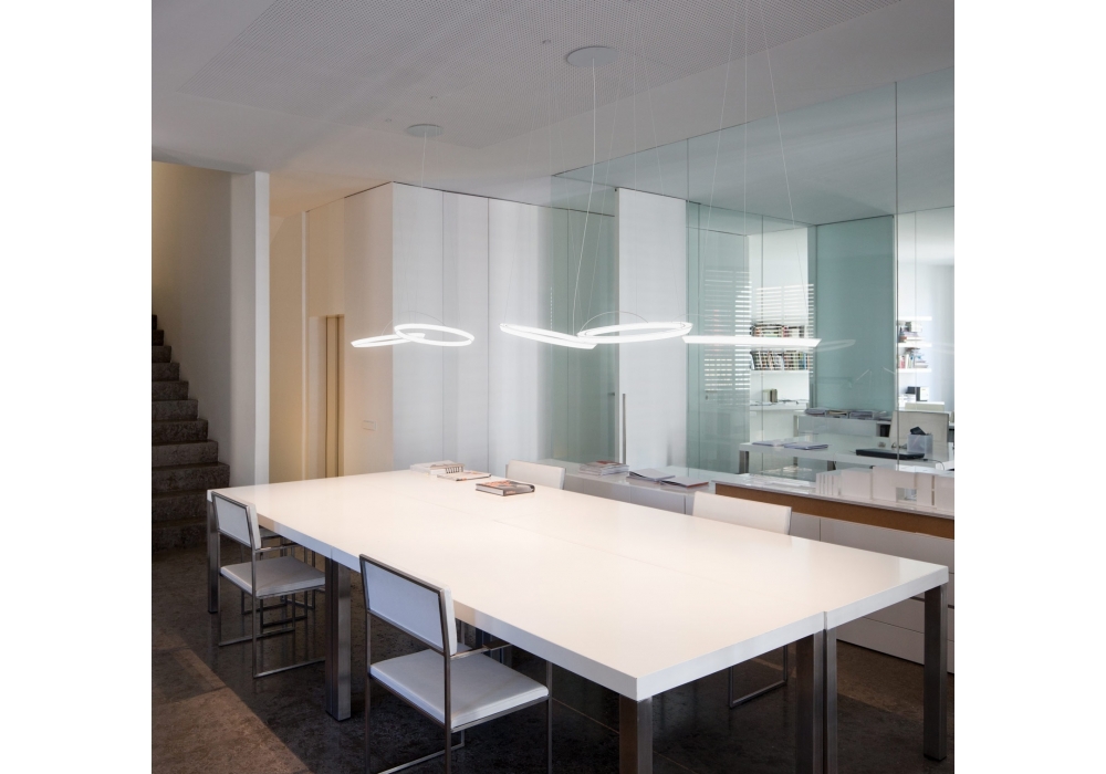 Halo by Vibia ist ein Hängeleuchte. Spendet sanftes, ja geradezu zauberhaftes Licht. Das Design stammt von Martín Azúa. Die Leuchte ist in Weiß matt lackiert.