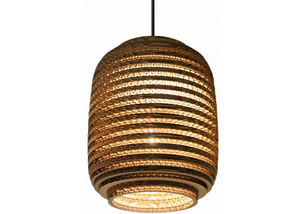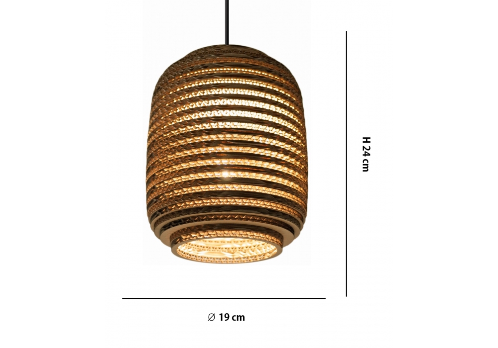 Ausi8 von Graypants ist eine Hängelampe mit Diffusor aus recyceltem Wellpappe, erhältlich in zwei Varianten (natürlich und weiß).