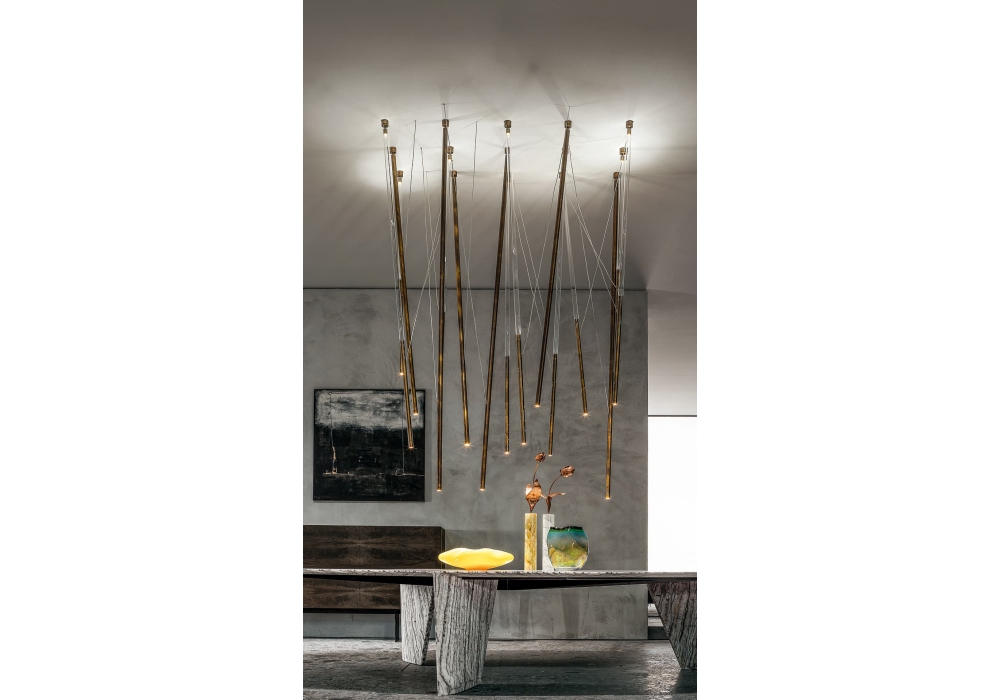 Skyfall von Massimo Castagna für Henge entworfen, ist eine LED-Hängeleuchte aus Messing und Glas. Verfügbar in mehreren Ausführungen und Abmessungen.