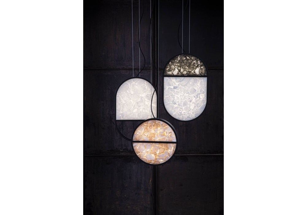 Geometric Full von Boris Klimek & Lenka für Brokis entworfen, ist eine Hängeleuchte mit Gestell aus mattschwarz lackiertem Metall. Der Diffusor besteht aus Glas und schirmt eine dimmbare LED-Lichtquelle in verschiedenen Ausführungen und Lichtschattierungen ab. Geometric Full ist in verschiedenen Modellen und Glasausführungen oben und unten erhältlich.