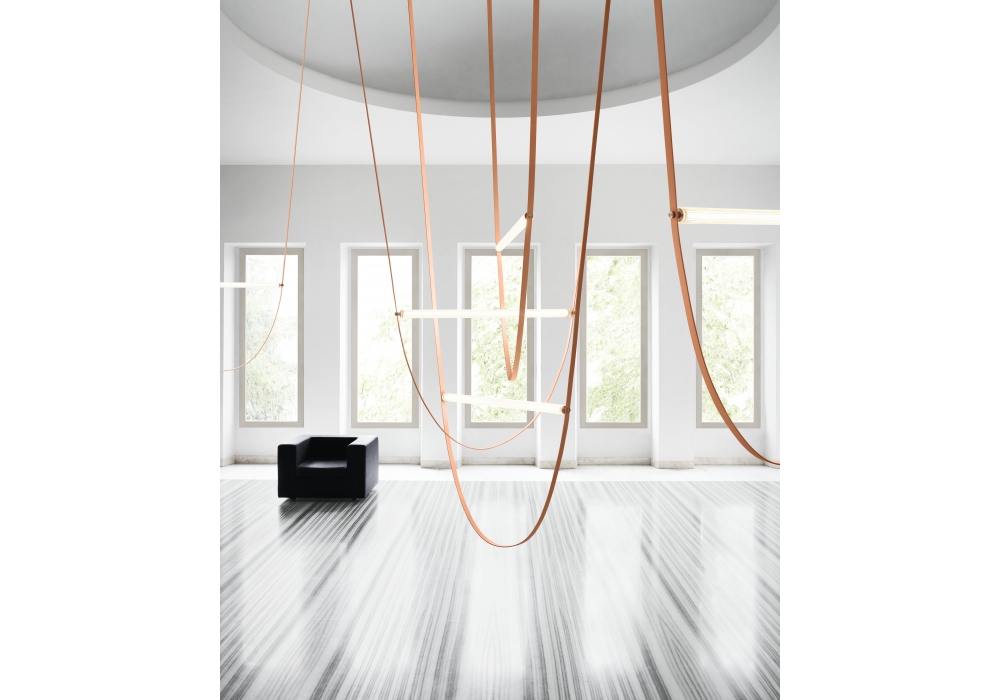 Wireline von Formafantasma für Flos entworfen, ist eine Hängeleuchte mit diffusem Licht. Transparentes extrudiertes Glasrohr mit internem Diffusor aus opalfarbenem PC. CNC-gefertigte Ringe aus satiniertem Edelstahl. Kabel aus extrudiertem Gummi. Spritzgegossene PC-Rosette in den gleichen Ausführungen wie das Kabel. Die in die Rosette integrierte Elektronik ermöglicht den Einsatz verschiedener Dimmersysteme: Push, 1-10, Potentiometer, DALI. Falls diese Systeme nicht vorhanden sind, kann der Lichtstrom während der Installation mit dem in der Rosette integrierten Push-System eingestellt werden. LED-Leuchtmittel im Lieferumfang enthalten.
