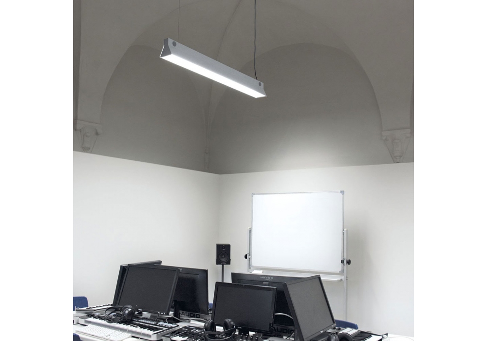 Sound von Emiliana Martinelli für Martinelli Luce entworfen, ist eine Hängeleuchte mit viereckiger Struktur aus grau lackiertem Aluminium mit dunkelgrauen Details. Die gewählte Lichtquelle ist vom integrierten dimmbaren LED-Typ.