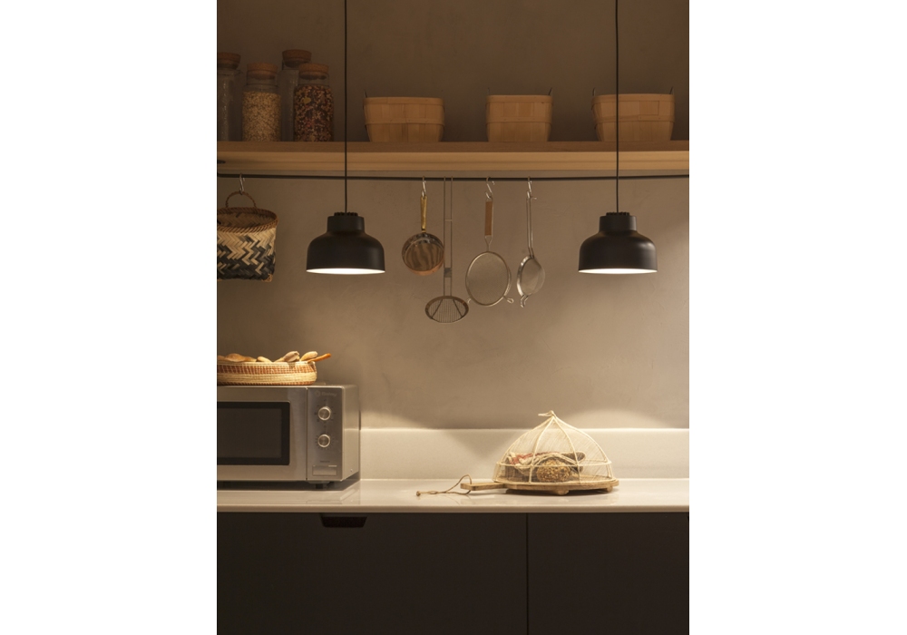 M64 von Santa&Cole entworfen, ist eine Hängeleuchte mit einem runden Metalldiffusor. Erhältlich in verschiedenen Farben mit oder ohne Dimmer.