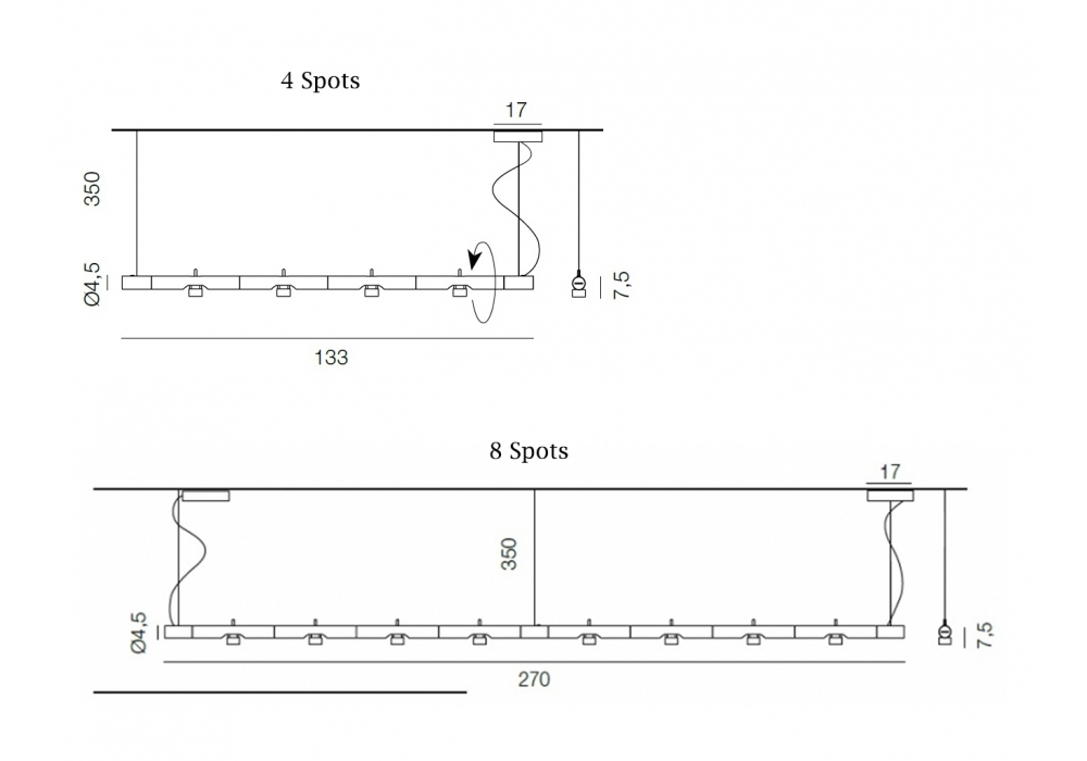 | Abmessungen | Ø 4,5 x L 133 cm; Ø 4,5 x L 270 cm. |