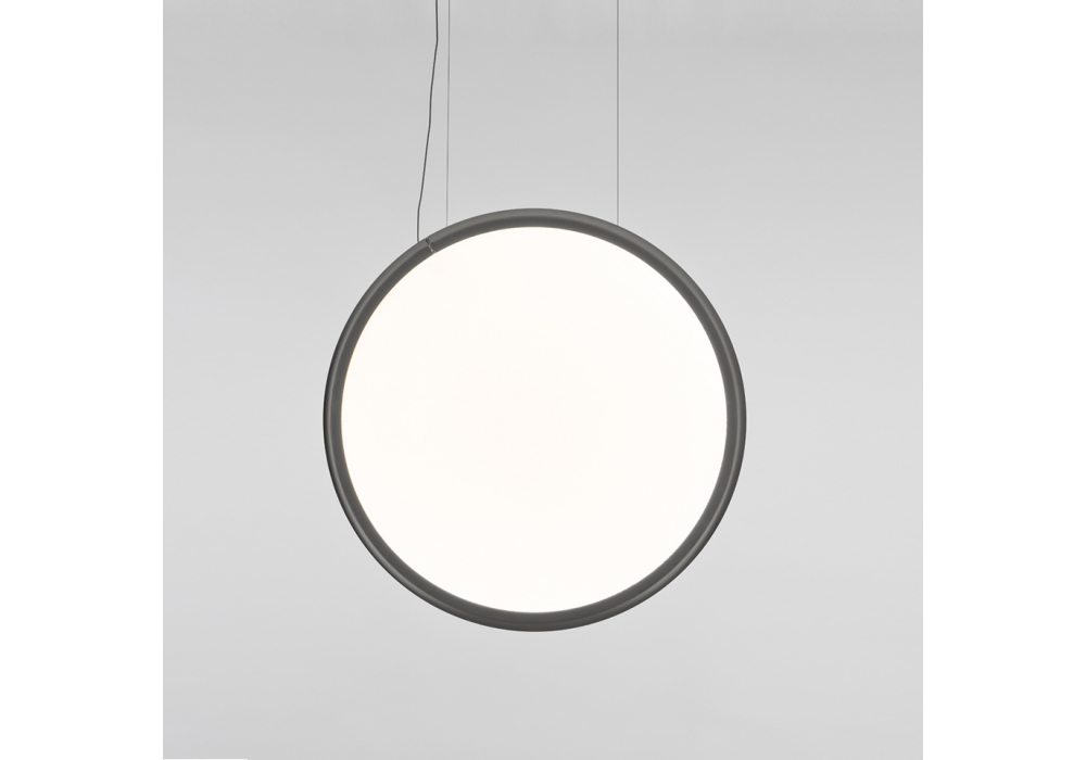 Discovery Vertical von Ernesto Gismondi für Artemide entworfen ist eine Hängeleuchte mit kreisförmiger Struktur aus poliertem und lackiertem Aluminium. Der Diffusor besteht aus Technopolymer und schützt die LED-Lichtquellen mit einem Push/Dali- oder Push % App-Dimmsystem, das über die Artemide-App ferngesteuert werden kann. Discovery Vertical ist in verschiedenen Ausführungen, Abmessungen und Dimmbarkeitsversionen erhältlich.