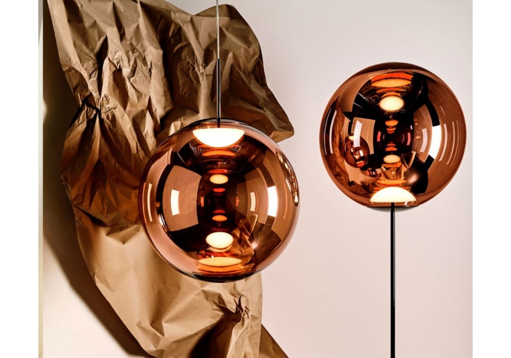 Globe von Tom Dixon entworfen, ist eine verspiegelte Pendelleuchte mit Kugelform aus Polycarbonat, die in verschiedenen Ausführungen und zwei Größen erhältlich ist.
