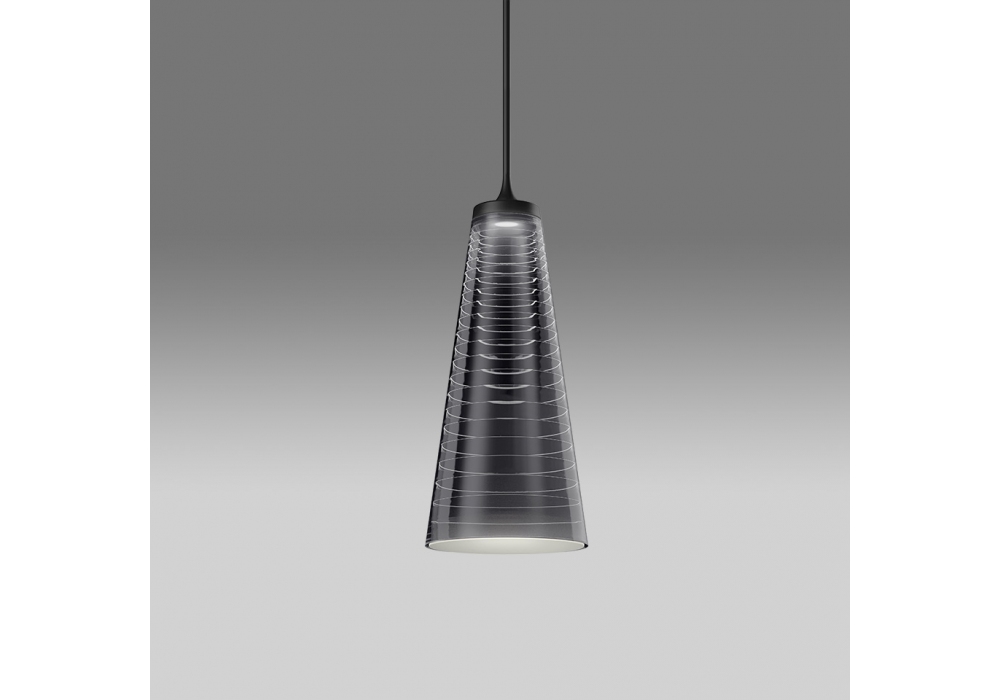 Look at Me entworfen von Alida Catella und Silvio De Ponte für Artemide ist eine Hängeleuchte mit einem konisch geformten Diffusor aus schwarzem Methacrylat und einer Metalltragstruktur. Die verwendete Lichtquelle ist vom Typ LED mit Push-Dimmbarkeitssystem. Look at Me Track ist in verschiedenen Größen erhältlich.