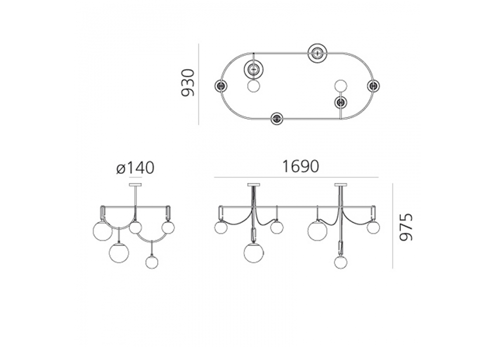 Nh S5 Elliptic von Neri&Hu für Artemide entworfen ist eine Hängeleuchte mit elliptischer Struktur aus lackiertem Stahl. Es gibt sechs kugelförmige Diffusoren aus weißem mundgeblasenem Glas, die dimmbare LED-Lichtquellen abschirmen. Nh S5 Elliptic ist in verschiedenen Ausführungen erhältlich.