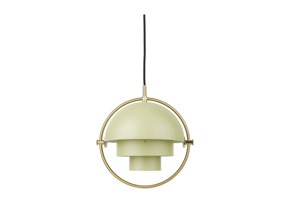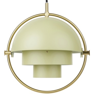 Multi-lite von Louis Weisdorf für Gubi entworfen, ist eine Pendelleuchte aus Messing oder Chrom. Es ist in verschiedenen Ausführungen erhältlich.