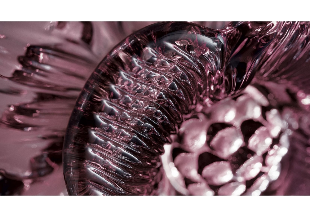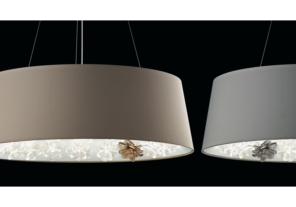 New Eden entworfen von Daniela Puppa und Francesca Martelli für Barovier & Toso, ist eine Hängeleuchte mit einem zylindrischen Leuchtenkörper, der von drei Metallstangen getragen wird. Die Besonderheit dieser Lampe ist der Diffusor, eine Blumenkomposition aus venezianischem Glas und eine Umzäunung der LED-Lichtquellen. New Eden ist in verschiedenen Größen und Ausführungen erhältlich.