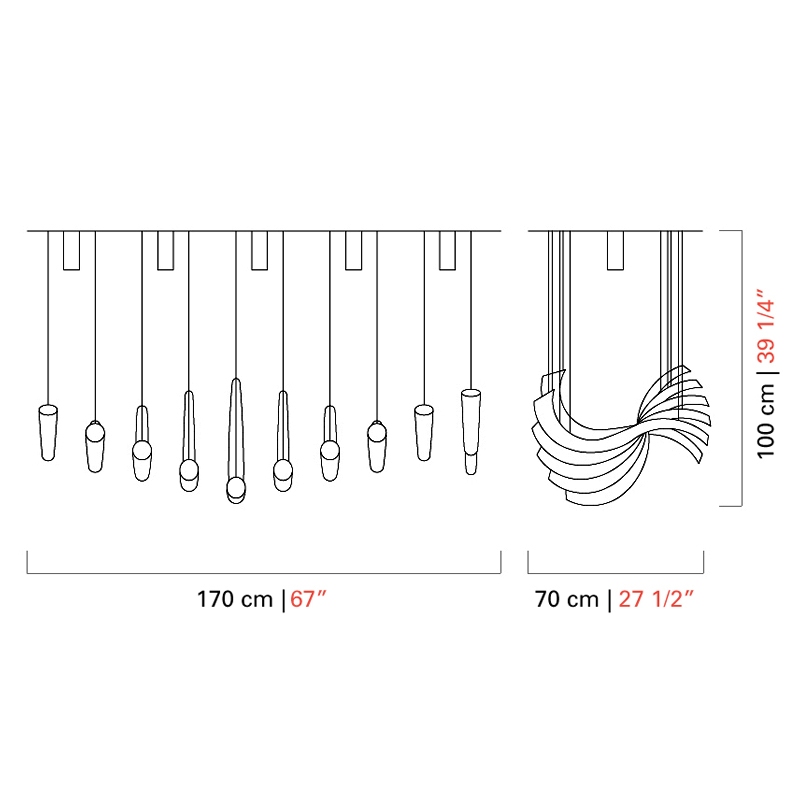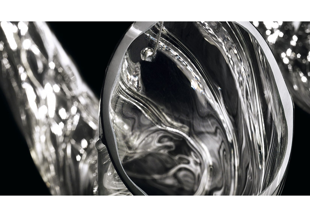 Swing entworfen und hergestellt von Barovier & Toso ist eine Hängeleuchte mit einer Deckenankerplatte aus poliertem Chrommetall. Die Anhänger bestehen aus venezianischem Kristall und sind in verschiedenen Ausführungen erhältlich. Bei den eingesetzten Leuchtpfeilern handelt es sich um dimmbare LEDs. Swing wird in verschiedenen Modellen hergestellt.