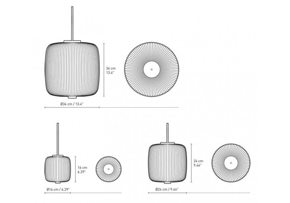 | Leuchtmittel | E12 / E14 (Ø 16 cm); E26 / E27 (Ø24 / 34 cm). |