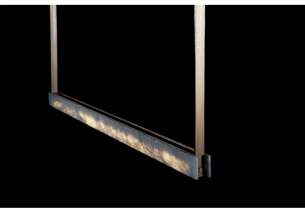 Chrystal Evo, von Massimo Castagna für Henge entworfen, ist eine modulare Lampe mit Körper aus weißem Chrystal-Stein. Aufhängung und Netzteil mit 4,5 cm Lederstreifen bezogen auf Wunsch bordeauxrot, natur oder schwarz. Es ist in warmweißer (3000K) oder extra warmweißer Ausführung erhältlich (2700K).