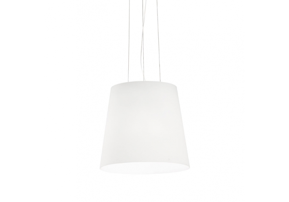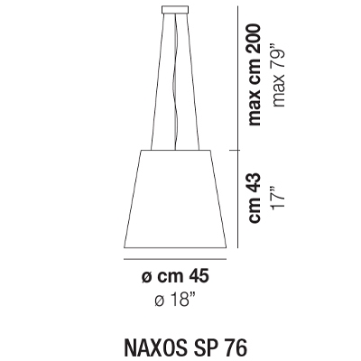 Naxos entworfen und hergestellt von Vistosi ist eine Hängeleuchte mit nickelfarbener Metalltragstruktur. Der Diffusor besteht aus konischem Glas in satinweißer Farbe und nimmt eine Lichtquelle mit einer dimmbaren E27-Fassung auf. Naxos ist in verschiedenen Modellen erhältlich.