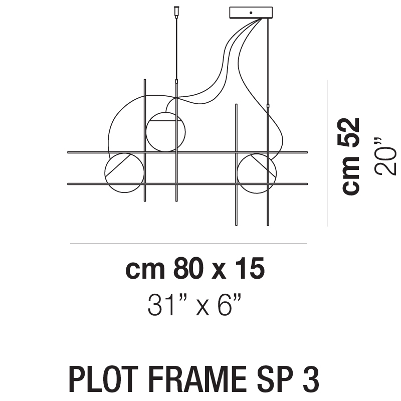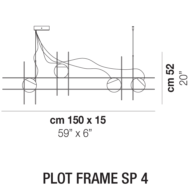 Plot Frame von Chiaramonte & Marin für Vistosi entworfen ist eine Hängeleuchte mit tragender Struktur aus mattschwarzem Metall. Die Diffusoren sind aus glänzend weißem Glas mit Kugelform und nehmen eine dimmbare LED-Lichtquelle in verschiedenen Lichtabstufungen auf.