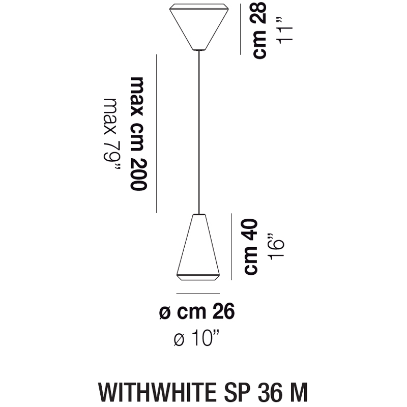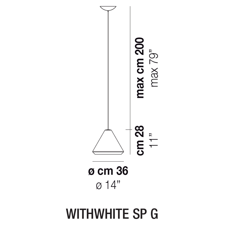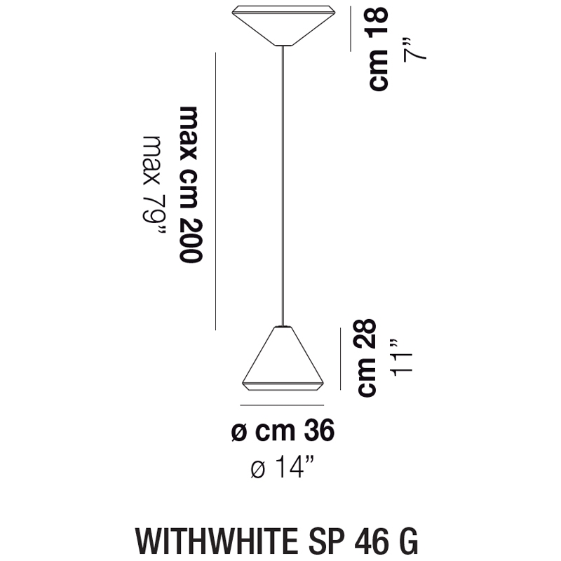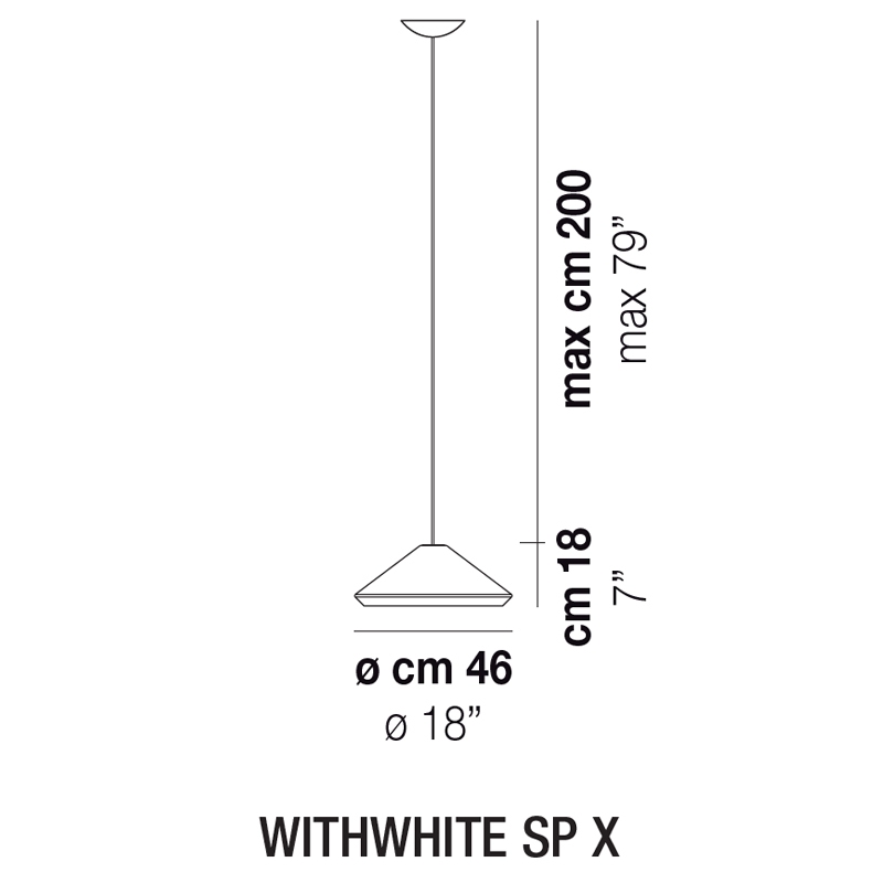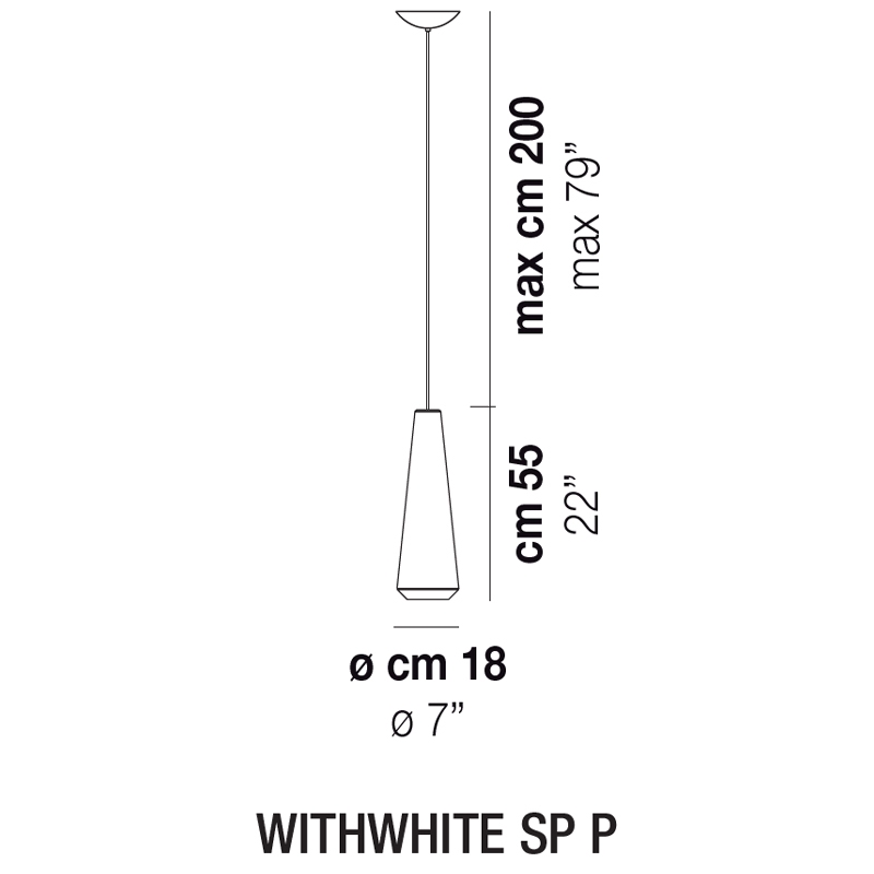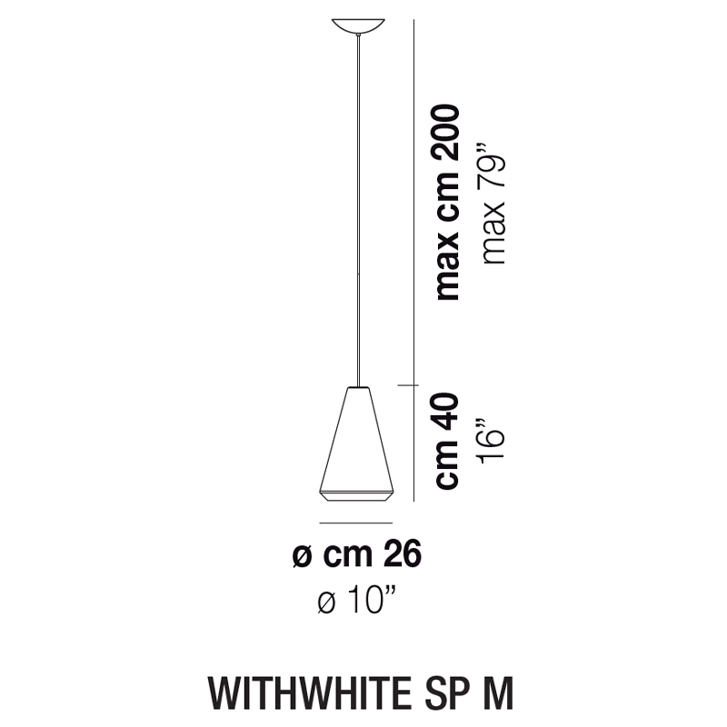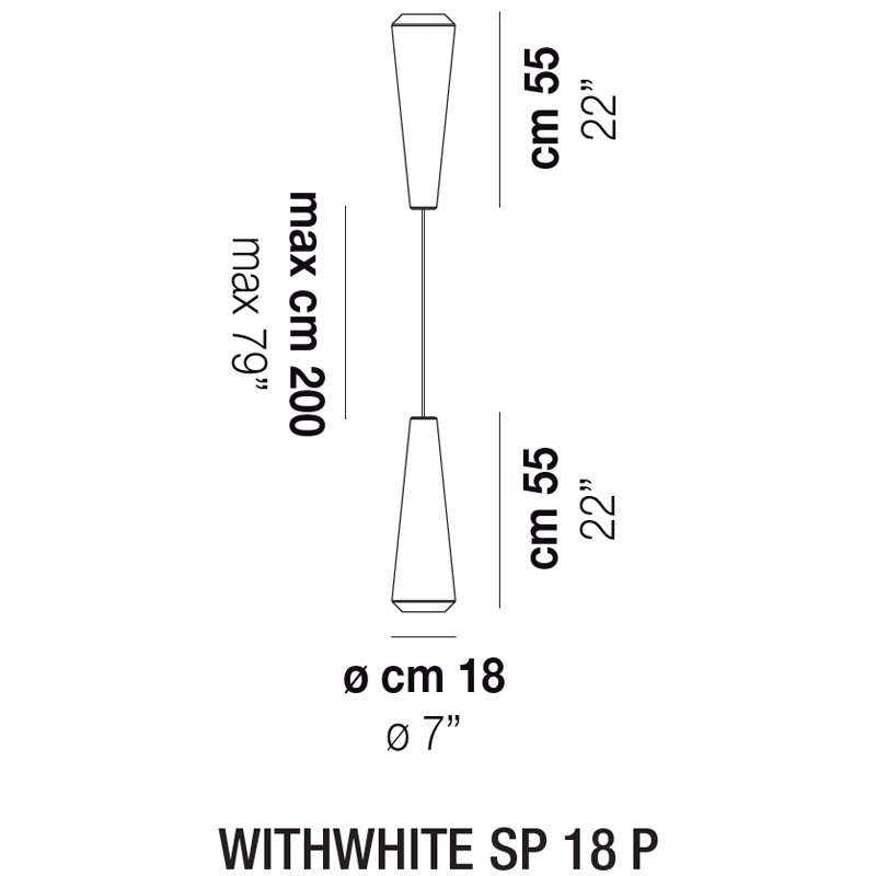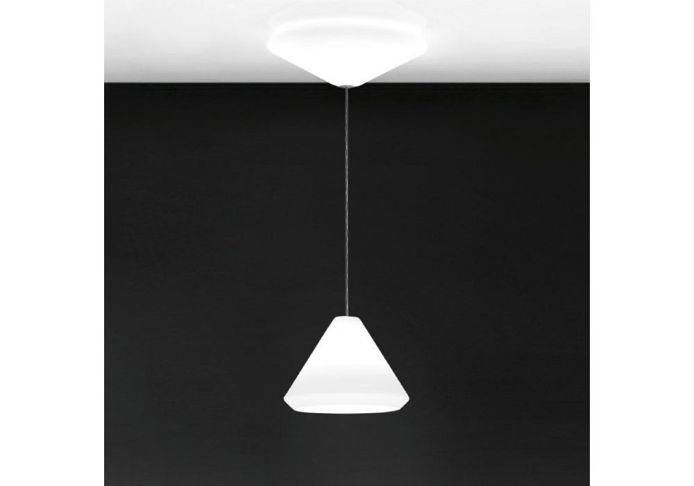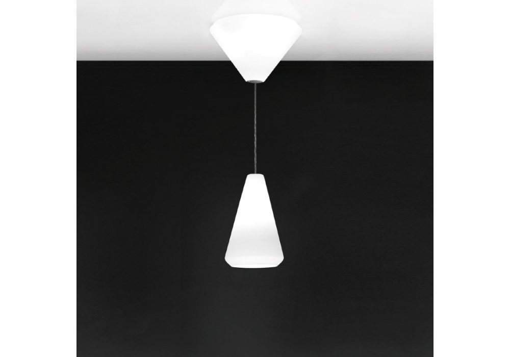 Withwhite von Mauro Olivieri für Vistosi entworfen ist eine Hängeleuchte mit tragender Struktur aus glänzend weißem Metall. Der Diffusor besteht aus konischem Glas mit satinweißer Oberfläche und nimmt eine dimmbare LED oder Halogenlichtquelle mit E27 Fassung auf. Withwhite ist in verschiedenen Modellen erhältlich.