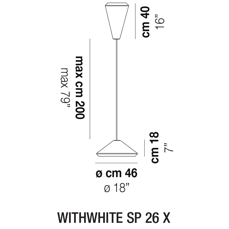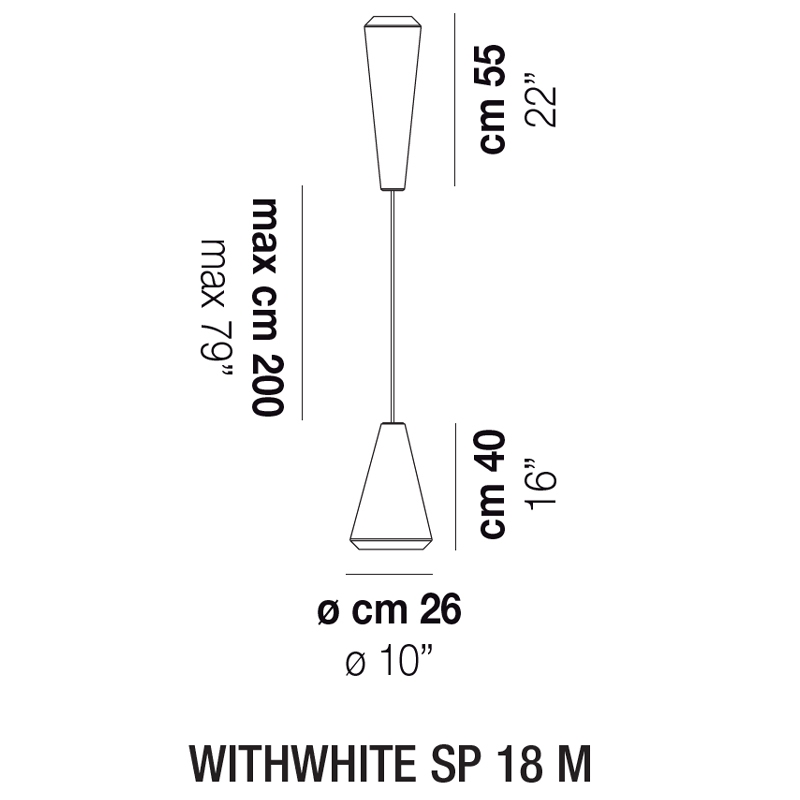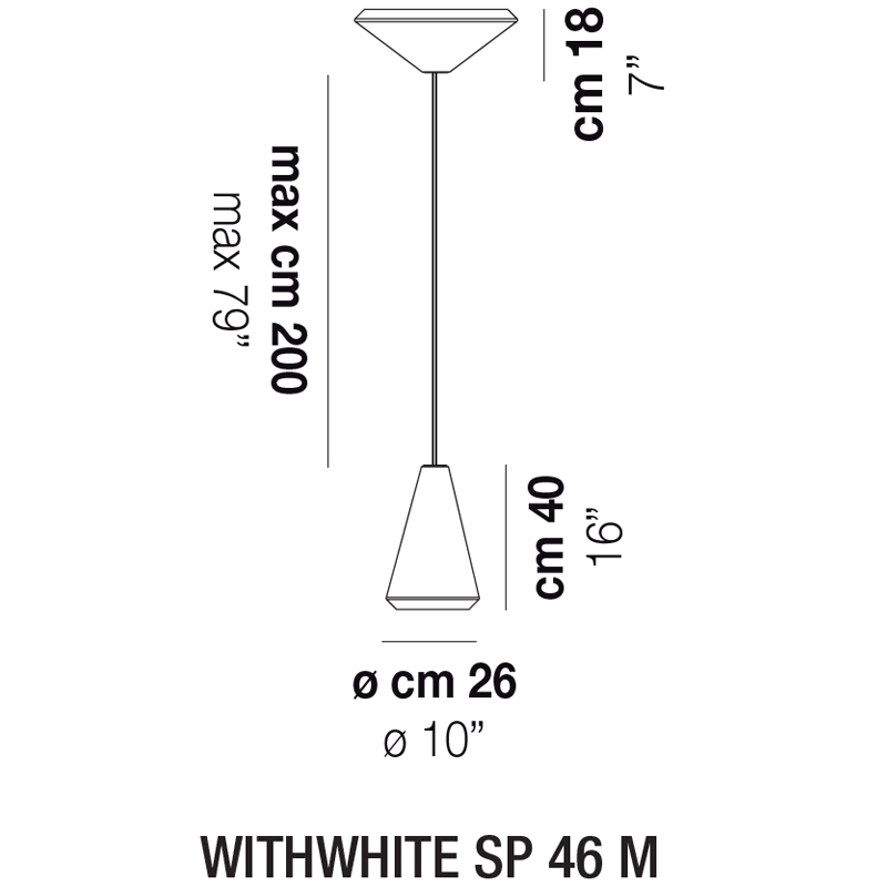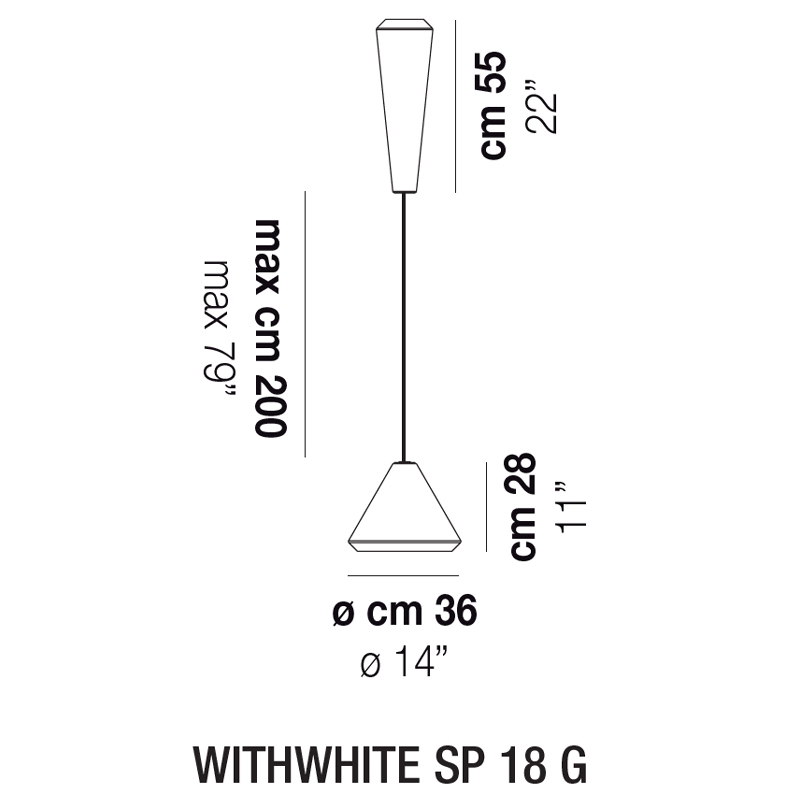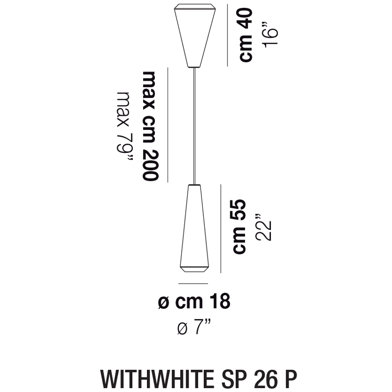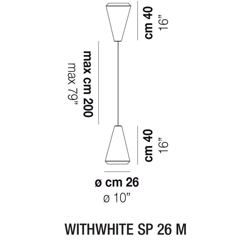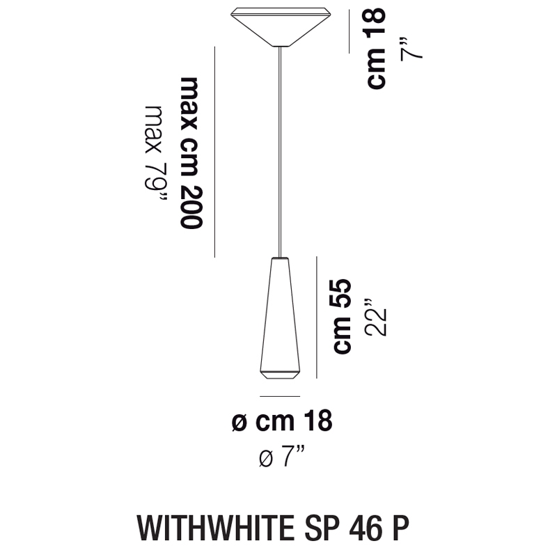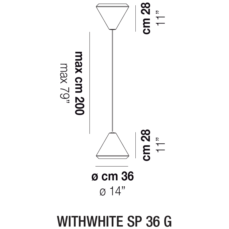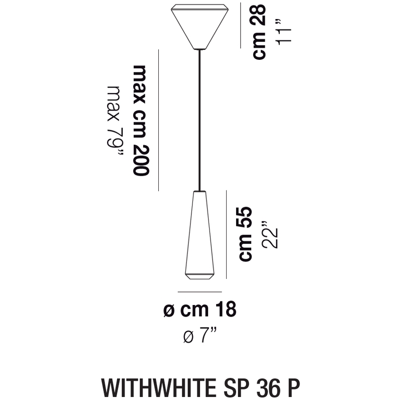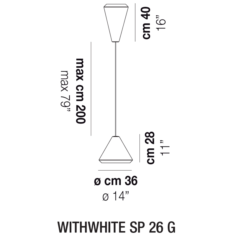 Withwhite von Mauro Olivieri für Vistosi entworfen ist eine Hängeleuchte mit tragender Struktur aus glänzend weißem Metall. Der Diffusor besteht aus konischem Glas mit satinweißer Oberfläche und nimmt eine dimmbare LED oder Halogenlichtquelle mit E27 Fassung auf. Withwhite ist in verschiedenen Modellen erhältlich.