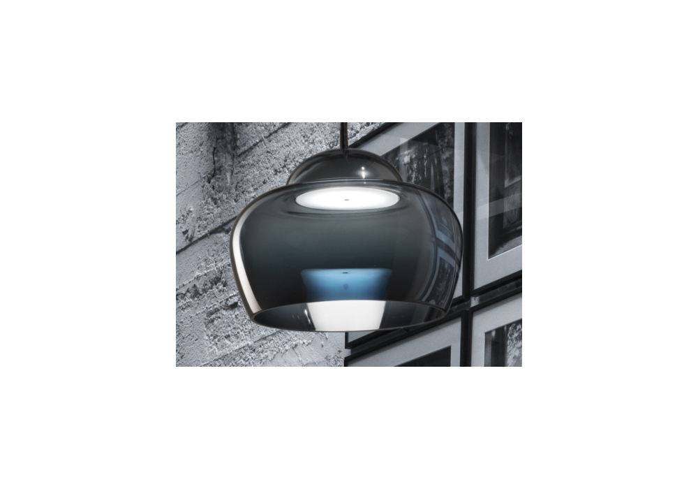 Cristallina von Romani Saccani Architetti Associati für Vistosi entworfen ist eine Hängeleuchte mit tragender Struktur aus mattweißem oder mattschwarzem Metall. Der Diffusor besteht aus rundem Glas und nimmt eine dimmbare LED Lichtquelle in verschiedenen Lichtschattierungen auf. Cristallina ist in verschiedenen Ausführungen erhältlich.