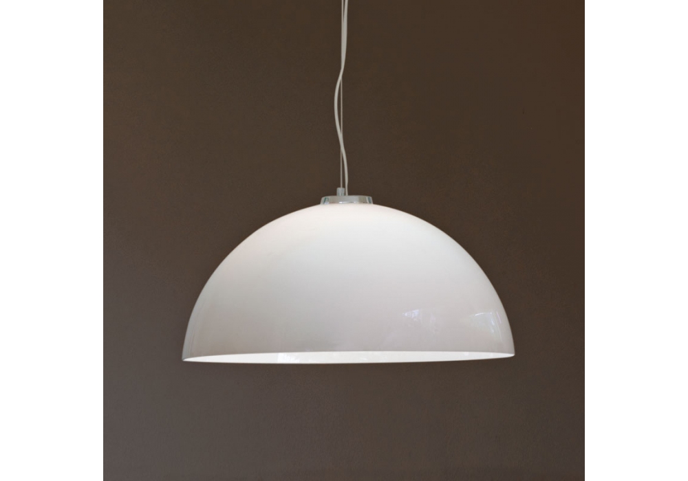 Dress entworfen und hergestellt von Vistosi ist eine Hängeleuchte mit tragender Struktur aus glänzend chromfarbenem Metall. Der Diffusor besteht aus rundem Glas in glänzendem Weiß und nimmt eine Halogen- oder LED-Lichtquelle mit E27-Anschluss auf, die in verschiedenen Lichttönen gedimmt werden kann.