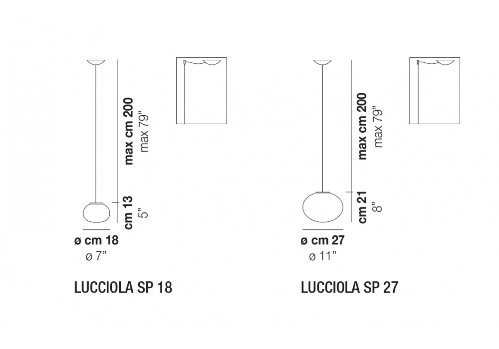 Lucciola SP entworfen und hergestellt von Vistosi ist eine Hängeleuchte mit Metalltragstruktur in glänzendem Weiß. Der Diffusor besteht aus ellipsoidem Glas in satiniertem Weiß und nimmt eine Lichtquelle mit E14/E27-Anschluss vom Typ Halogen oder dimmbare LED auf. Lucciola ist in verschiedenen Modellen erhältlich.