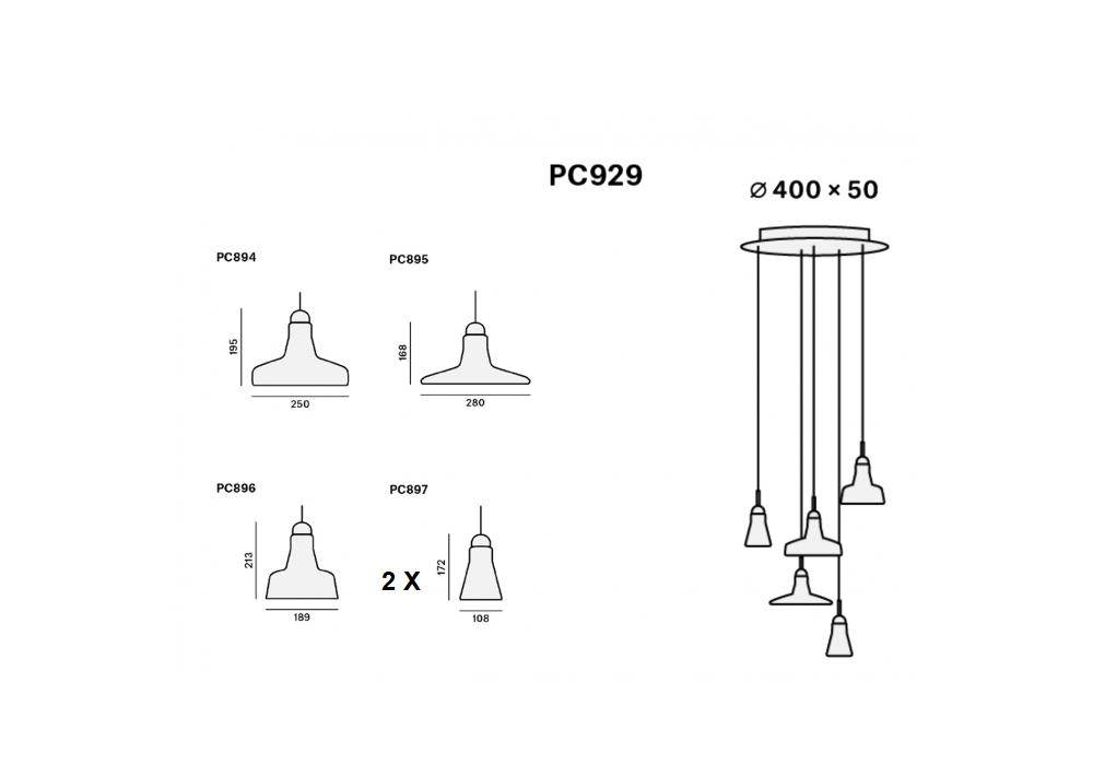 | Abmessungen | PC894 : Ø 25 x H 19,5 cm; PC895 : Ø 28 x H 16,8 cm; PC896 : Ø 18,9 x H 21,3 cm; PC897 : Ø 10,8 x H 17,2 cm |