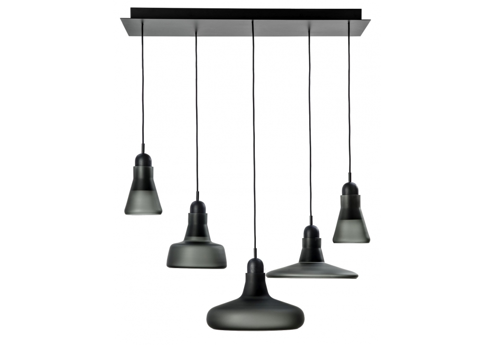 Shadows XL Set Rechteckig von Koldova, Dan Yeffet für Brokis entworfen, ist eine Hängeleuchte mit tragender Struktur aus lackiertem Metall. Die Diffusoren sind in vier verschiedenen Modellen und Größen aus mundgeblasenem Glas und schirmen eine dimmbare LED-Lichtquelle ab, die von einem mit Textilfaser ummantelten Kabel gespeist wird. Shadows XL Set Rectangular ist in verschiedenen Ausführungen erhältlich.