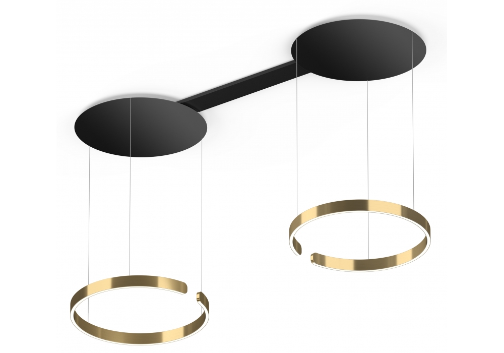Mito Sospeso Due 60 von Occhio entworfen, ist eine höhenverstellbare LED-Hängeleuchte, durch das revolutionäre Gestenmanagementsystem "touchless control" ist es möglich, die Lichtfarbe kontinuierlich zu kalibrieren. Es besteht aus Aluminium, lackiertem Stahl, PVD-Beschichtung, Kunststoff, optischem Silikon und Glasfaser.