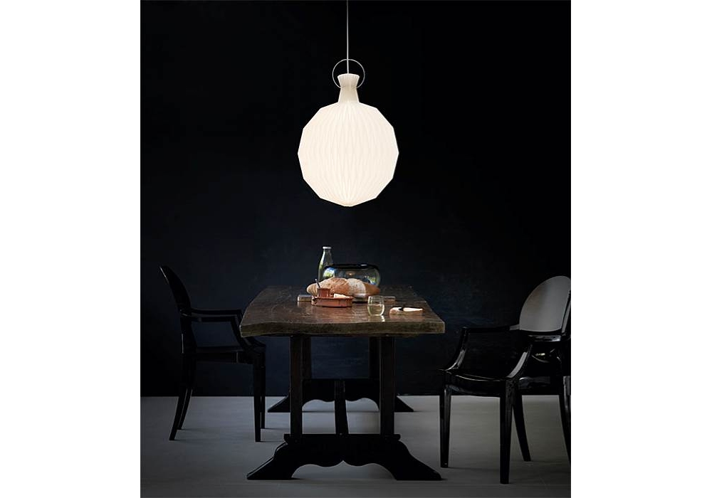 101 Paper entworfen von Kaare Klint für Le Klint ist eine Hängeleuchte die aus Kunststoff und Papiermaterial besteht. Der Lampenschirm hat eine ellipsenförmige Form die vollständig aus Papiermaterial besteht, mit einer Oberfläche, die durch regelmäßige und präzise Falten bereichert wird, um eine optimale Lichtstreuung zu gewährleisten. Die verwendete Lichtquelle ist LED oder Halogen (nicht im Lieferumfang enthalten) die von einem mit weißem Kunststoff überzogenen Kabel gespeist wird. 101 Papier ist in verschiedenen Größen erhältlich.