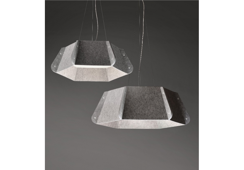 Hekta von Alex O’Connell für Rakumba entworfen, ist eine Pendelleuchte aus recyceltem PET in verschiedenen Ausführungen. Acryldetails mit LEDs, in verschiedenen Farben erhältlich. Die Lampe ist auch in zwei Größen erhältlich.