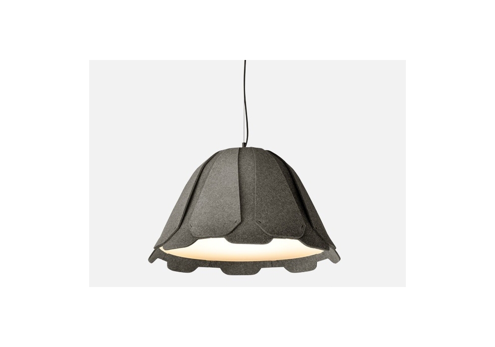 Tulip von Rakumba entworfen, ist eine Pendelleuchte aus recyceltem Polyesterfilz und Diffusor aus satiniertem Acryl. Die Leuchte ist in verschiedenen Ausführungen erhältlich.