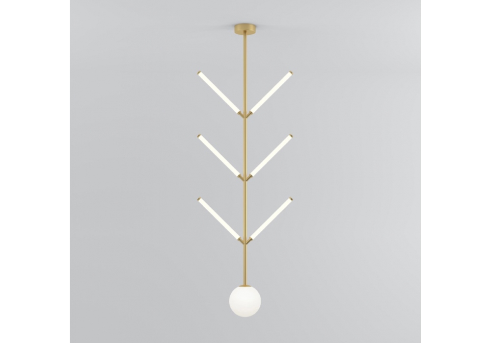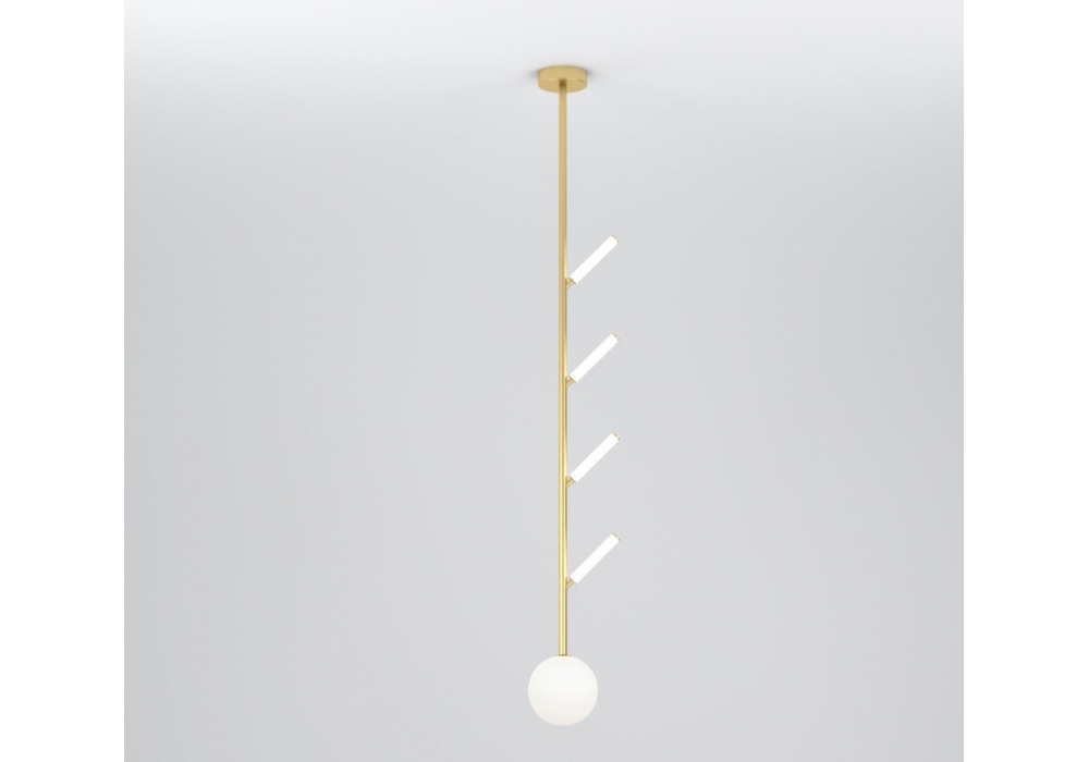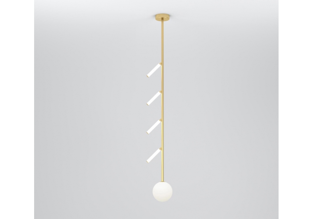 Arrow von Atelier Areti entworfen ist eine Hängeleuchte aus gebürstetem Messing oder Nickel und weißen Glasdiffusoren. Erhältlich in verschiedenen Modellen.