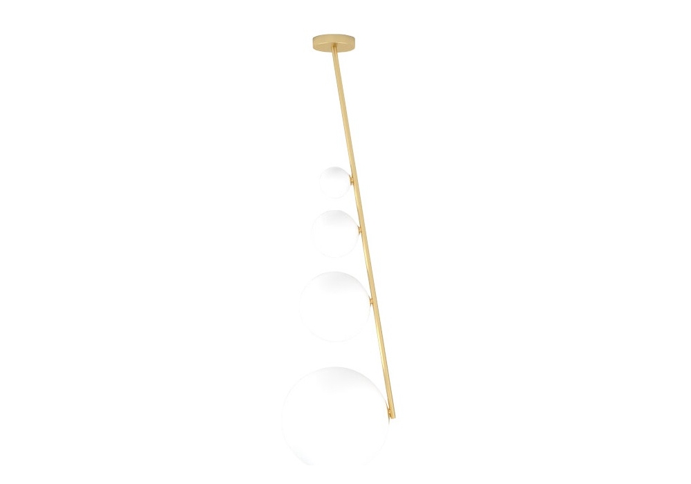 Perspective von Atelier Areti entworfen, ist eine Hängeleuchte aus gebürstetem Messing und weißem Glasdiffusor. Erhältlich in zwei Modellen.