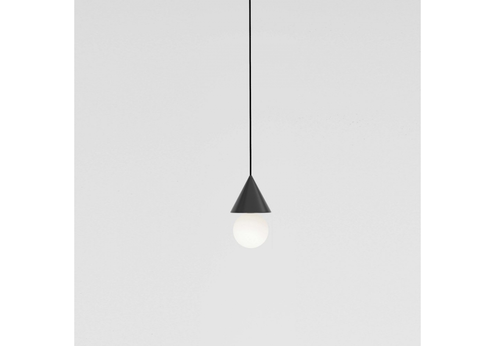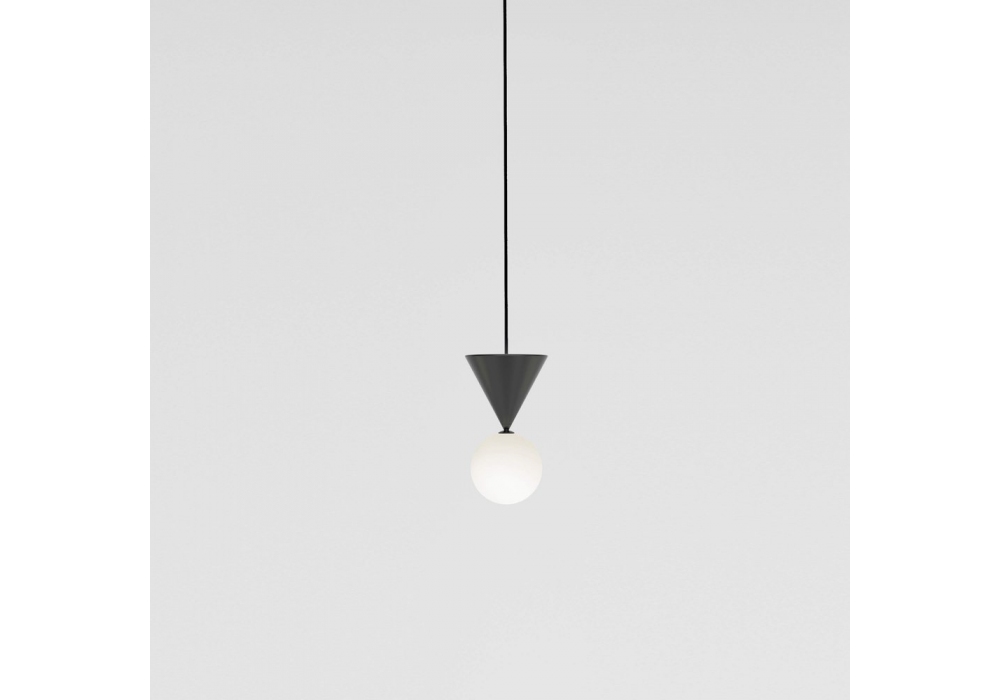 Harlequin von Atelier Areti entworfen ist eine Hängeleuchte aus weiß oder schwarz lackiertem Metall und weißem Glasdiffusor. Erhältlich in zwei Modellen.