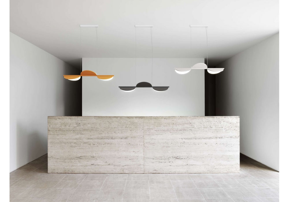 Almendra S von Patricia Urquiola für Flos entworfen, ist eine Hängeleuchte mit diffusem Licht. Sie verfügt über eine röhrenförmige Aluminiumstruktur und CNC-gefräste Aluminiumanschlüsse, erhältlich in mattem oder metallischem Finish. Dank integrierter Edge-Lighting-Technologie können die Lichtelemente in 60°-Schritten gedreht werden, um die Lichtrichtung zu modulieren. Die Metallrosette in mattweißer oder grundierter Ausführung ermöglicht die Verwendung verschiedener Lichtstärkenregelungssysteme: 1–10 V, DALI, Taster oder Potentiometer. LED-Leuchtmittel im Lieferumfang enthalten.