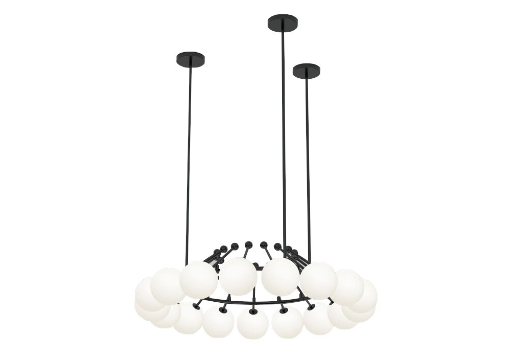 Lever Rounded von Atelier Areti entworfen, ist ein Hängeleuchter aus gebürstetem Messing oder lackiertem Metall in verschiedenen Ausführungen. Diffusoren aus weißem Glas.