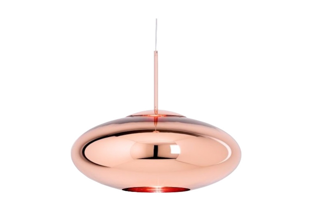 Copper Wide LED von Tom Dixon entworfen, ist eine Pendelleuchte aus Polycarbonat mit Kupfer-Finish.