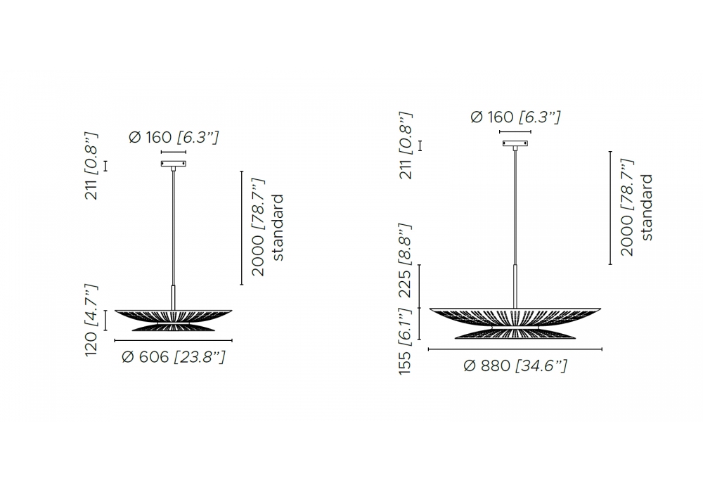 | Diffusor | Ø 60,6 x H 12 cm; Ø 88 x H 15,5 cm. |