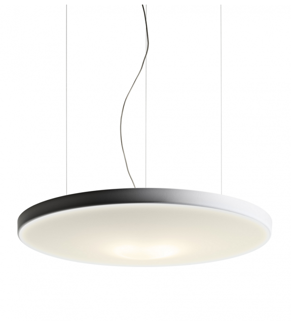 Pétale von Studio Odile Decq für Luceplan entworfen, ist eine Pendelleuchte aus einer schallabsorbierenden Platte, die mit weißem Stoff überzogen ist. Es ist möglich, die Art der Optik und Lichtquelle zu wählen. Verfügbar in verschiedenen Modellen.