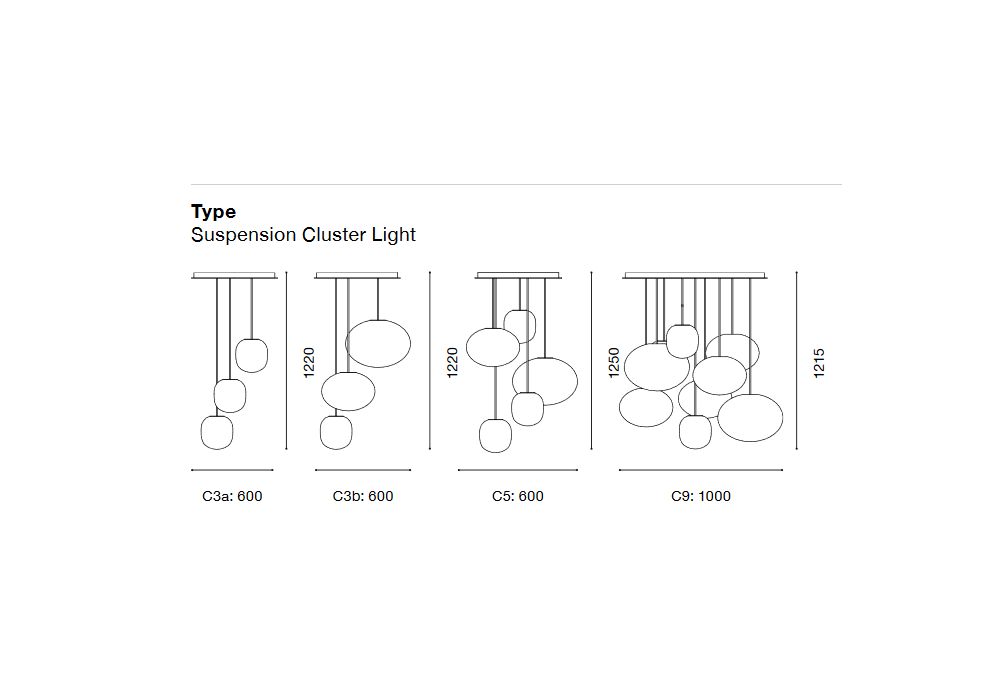 | Abmessungen | C3a, C3b, C5: ceiling plate Ø60 cm x H 4 cm; C9: ceiling plate Ø100 cm x H 4 cm |