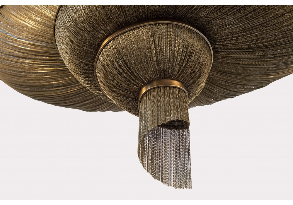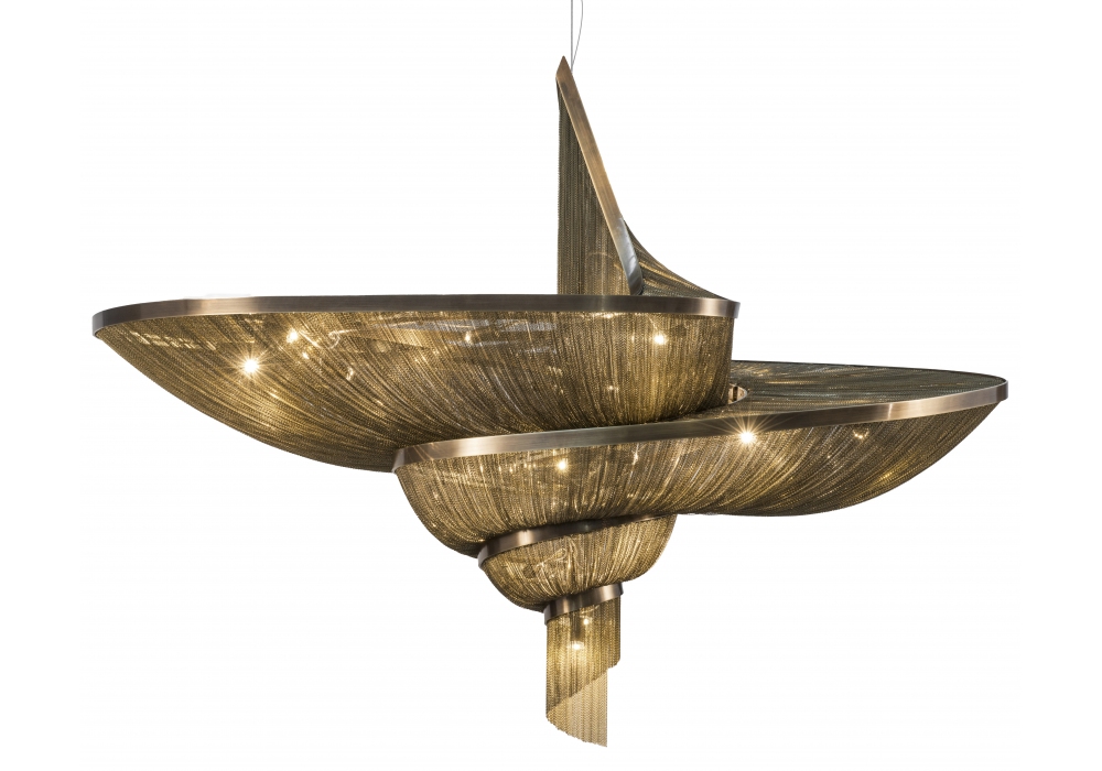 Epoque von Stefano Papi & Saviz Yaghmai für Terzani entworfen, ist ein Kronleuchter mit tragender Struktur aus Metall und Anhängern aus plattiertem Messinggeflecht. Als Lichtquelle dient eine integrierte LED dimmbar in verschiedenen Lichtschattierungen. Epoque ist in verschiedenen Modellen und Ausführungen erhältlich.