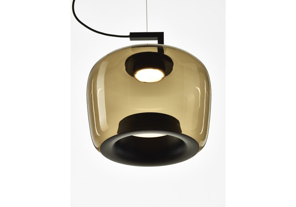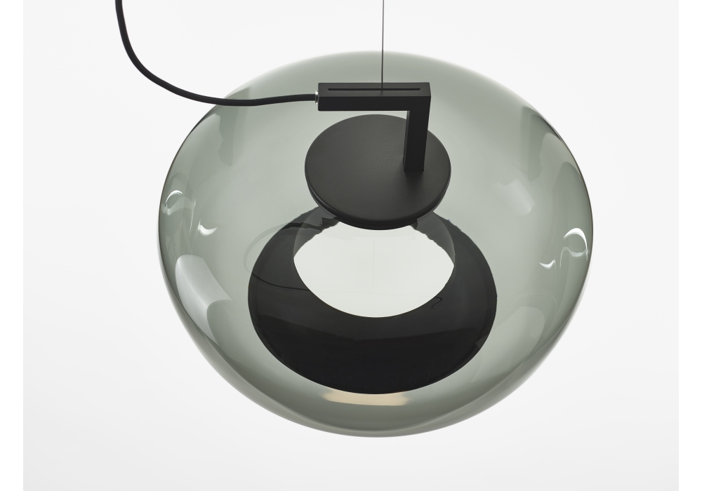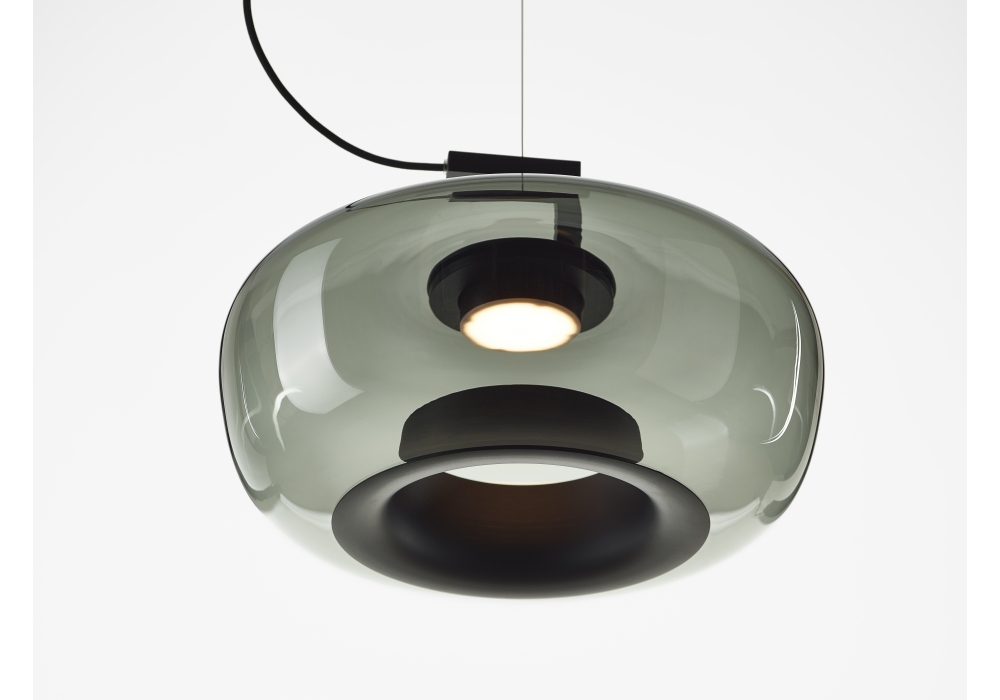 Double vom Designstudio LCM Marin für Brokis entworfen, ist eine Hängeleuchte mit einer Struktur aus mattschwarz pulverbeschichtetem Metall. Der runde Diffusor aus mundgeblasenem Glas mit glänzender Oberfläche umgibt eine dimmbare LED-Lichtquelle mit verschiedenen Lichtsteuerungsmöglichkeiten. Mit dem drehbaren Weißlichtdimmer (TW) lässt sich die Farbtemperatur der Lichtquelle einstellen.