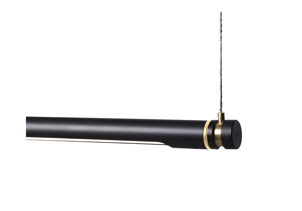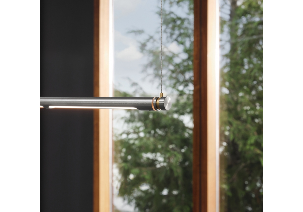 Oneline von Kasper Friis Kjeldgaard für Fritz Hansen entworfen, ist eine Hängeleuchte aus Edelstahl, gebürstetem Messing oder schwarzem PVD, jeweils mit Details aus poliertem Messing und silberfarbenen Aufhängungskabeln. Ausgestattet mit langlebiger LED-Technik und dimmbar.