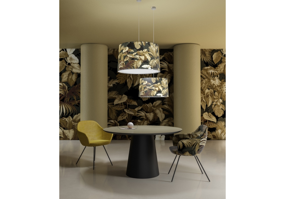 Lolita, von Momenti Lab für Momenti entworfen, ist eine Pendelleuchte, die mit technischem Gewebe aus bedruckter "Tecno Fibre"-Glasfaser bezogen ist. Schutzart IP20. Erhältlich in verschiedenen Größen und Ausführungen.