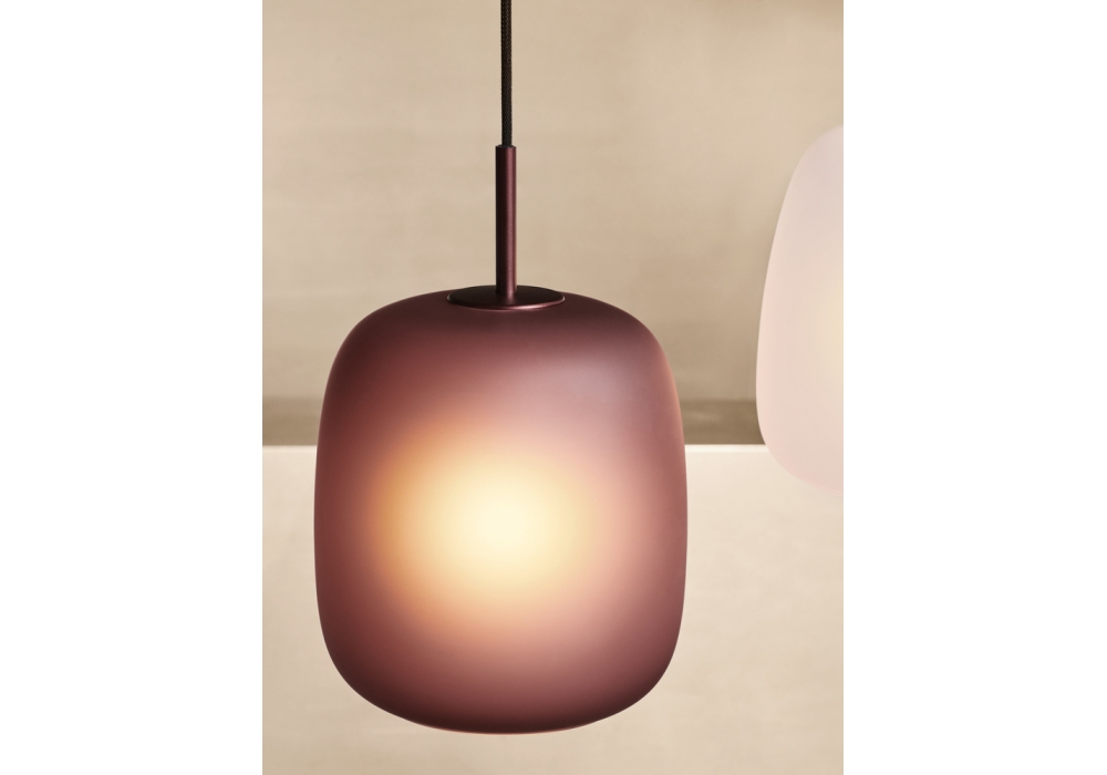 Maluma™ von Fumie Shibata für Fritz Hansen entworfen, ist eine Hängeleuchte mit mundgeblasenem Farbglasschirm und passendem Textilkabel. Verfügbar in mehreren Ausführungen.