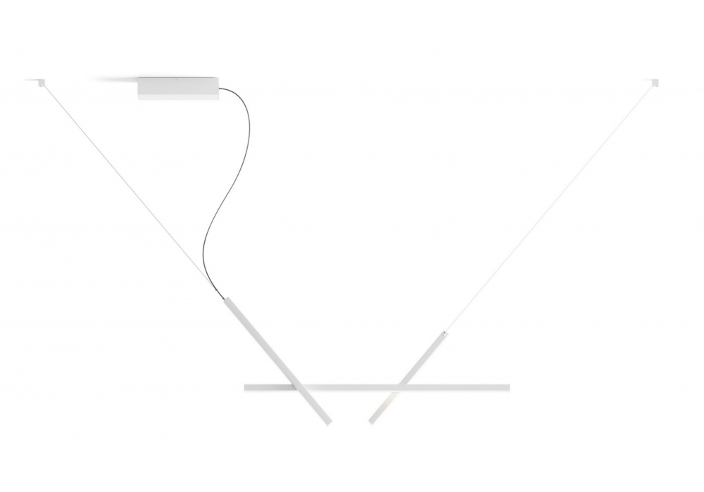 Across von Pio und Tito Toso für Luceplan entworfen, ist eine Hängeleuchte aus weißem oder schwarzem Aluminium. Es ist möglich, den in der Deckenrosette vorhandenen Dimmertyp zu wählen. Verfügbar in zwei Dimensionen.