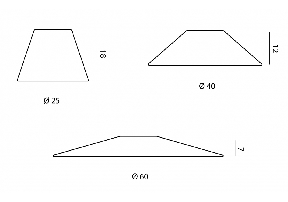 | Diffusor | Ø 25 H 18 cm; Ø 40 H 12 cm; Ø 60 H 7 cm. |