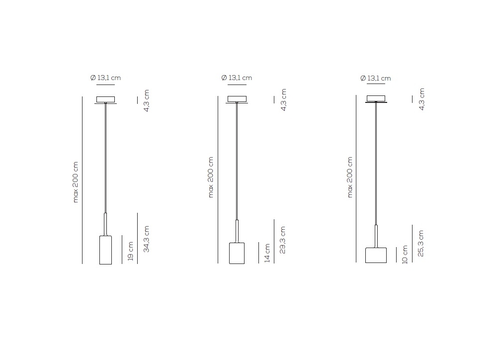 | Abmessungen | • Ø 8 x H 19 cm - Hmax 200 cm; • Ø 10 x H 14 cm - Hmax 200 cm; • Ø 14 x H 10 cm - Hmax 200 cm |
